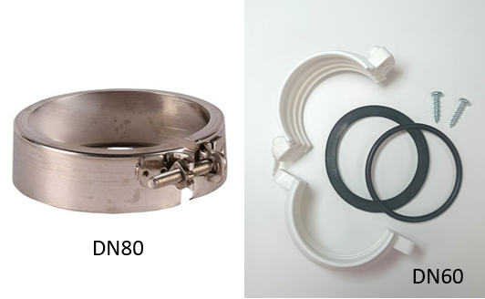 Spona pre spojenie flexi hadíc DN80 s kódom 0004C/50m a 0004C/1m, DN60 s kódom 0003C/50m a 0003C/1m.